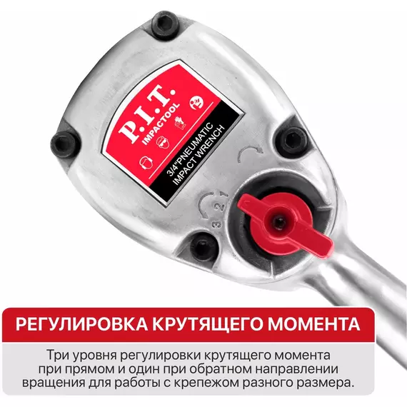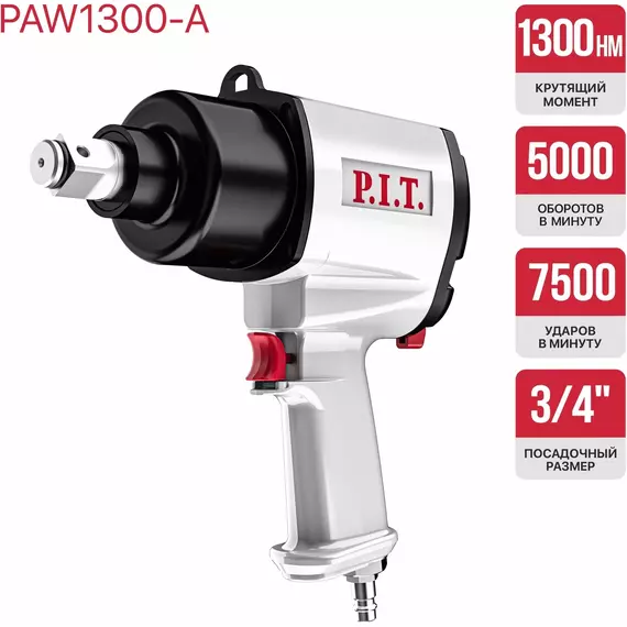 Гайковерт пневматический P.I.T. PAW1300-A 220л/мин серый/черный