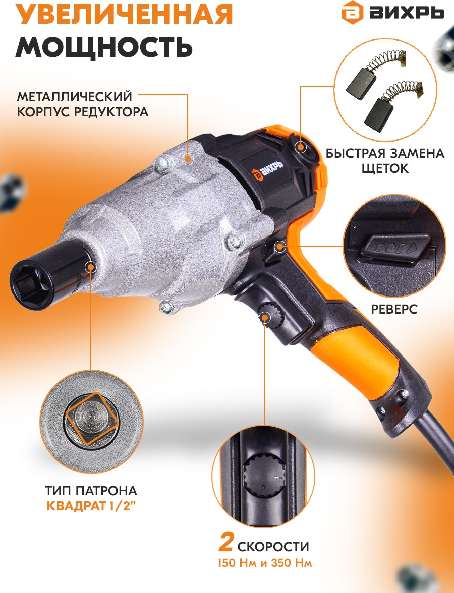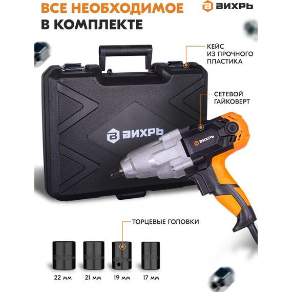 Гайковерт Вихрь ГС-350НМ 1100Вт патрон квад.1/2, кейс