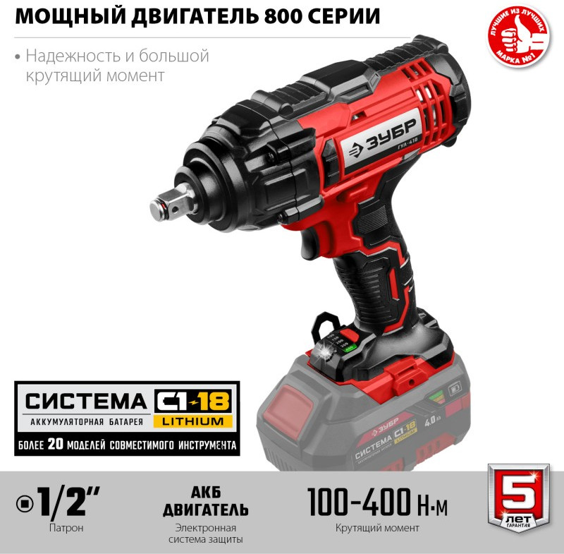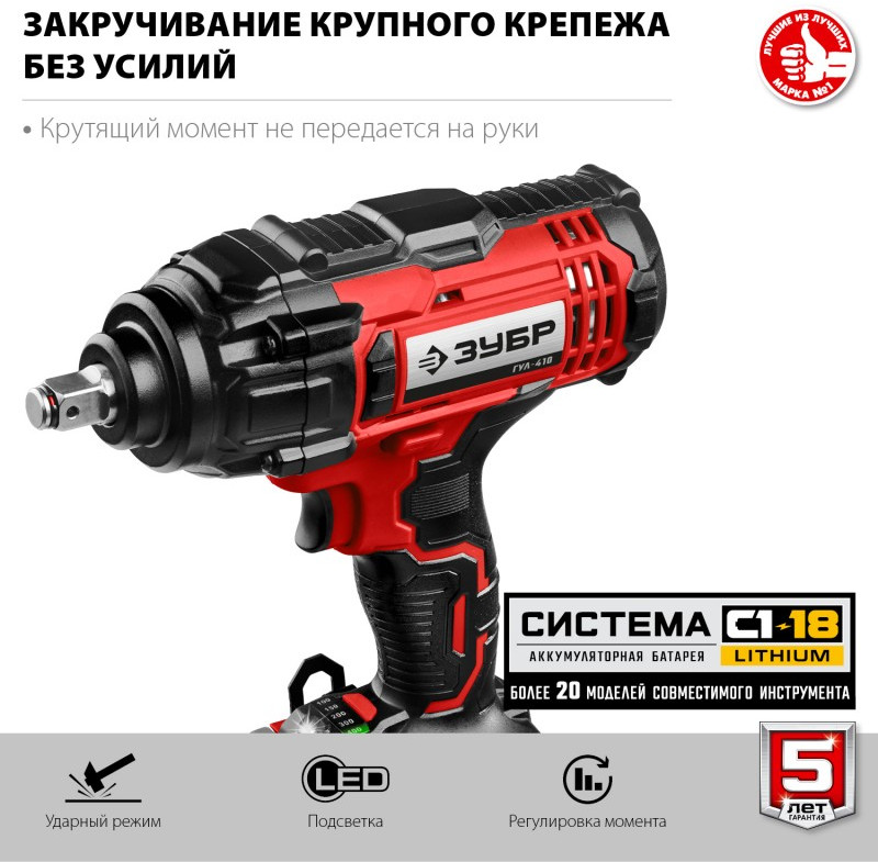 Гайковерт ударный Зубр ГУЛ-410 18В, без АКБ, в коробке