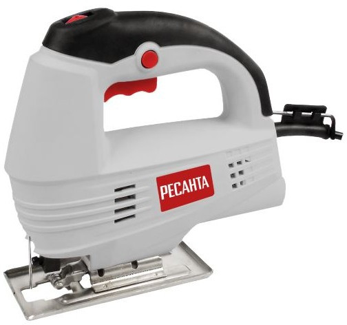 - Электрический лобзик Ресанта Л-55/600 - отличается очень низкой стоимостью и относится к бытовым лобзикам. При этом имеет плавную регулировку скорости для распила различных материалов c высокой точностью и «чистым резом». Также есть регулировка угла наклона подошвы ±45° и кнопка фиксации выключателя для продолжительного пиления