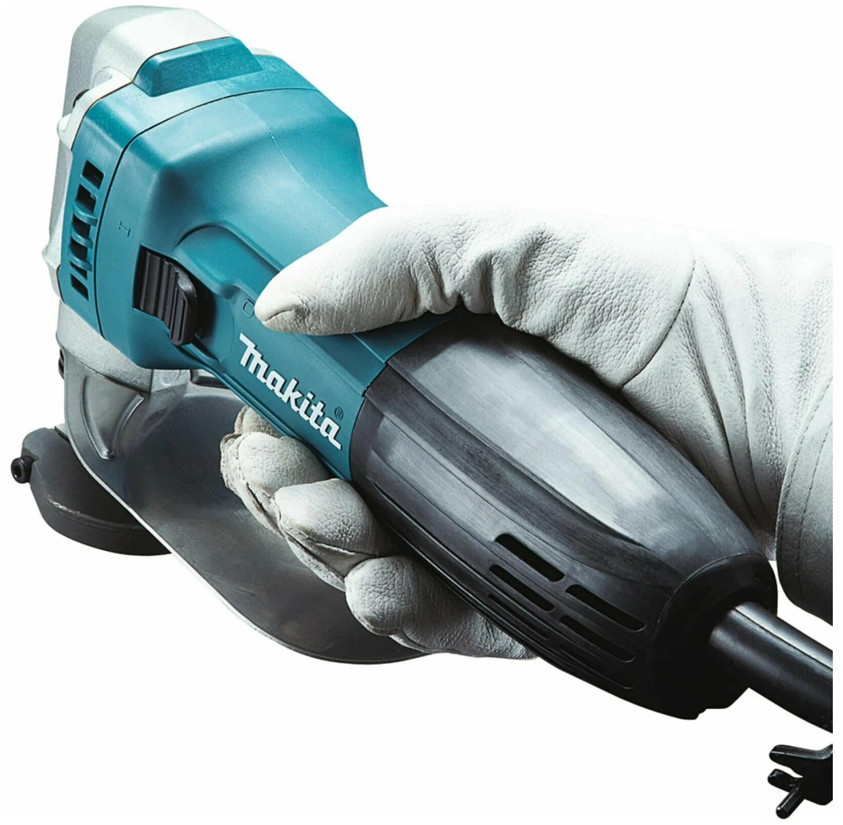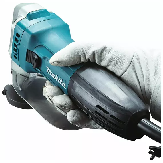 - Особенности: нижнее ограничение для защиты рук пользователя, блокирующий выключатель, встроенный измеритель толщины металла