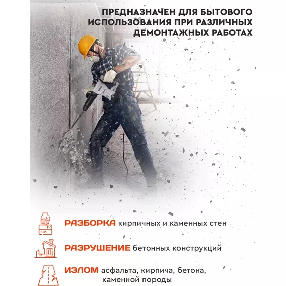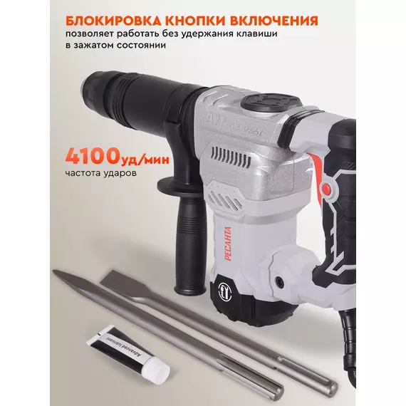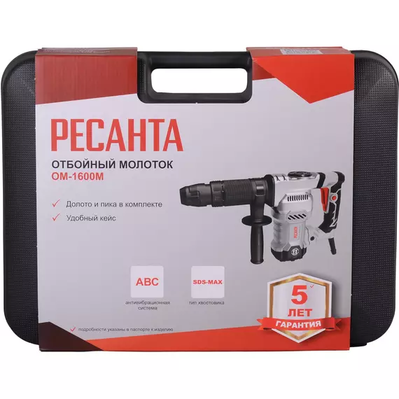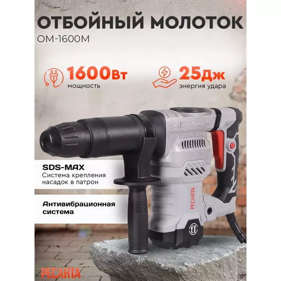 Отбойный молоток РЕСАНТА ОМ-1600М 1600 Вт, 25 Дж, SDS-MAX