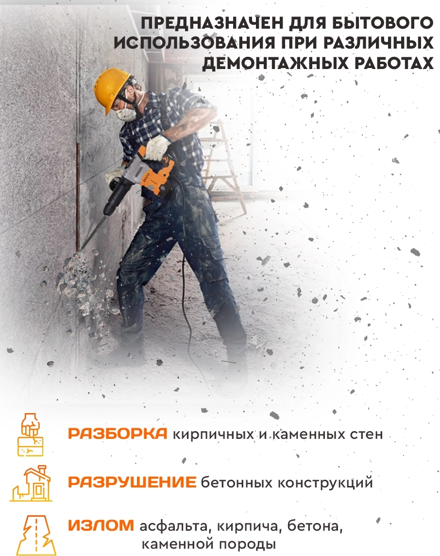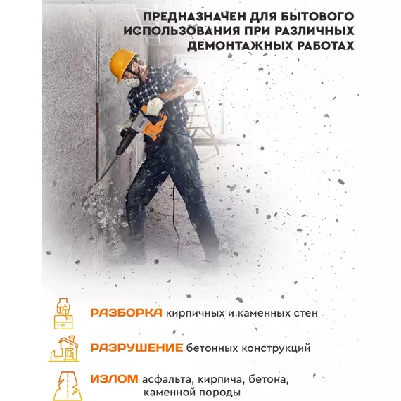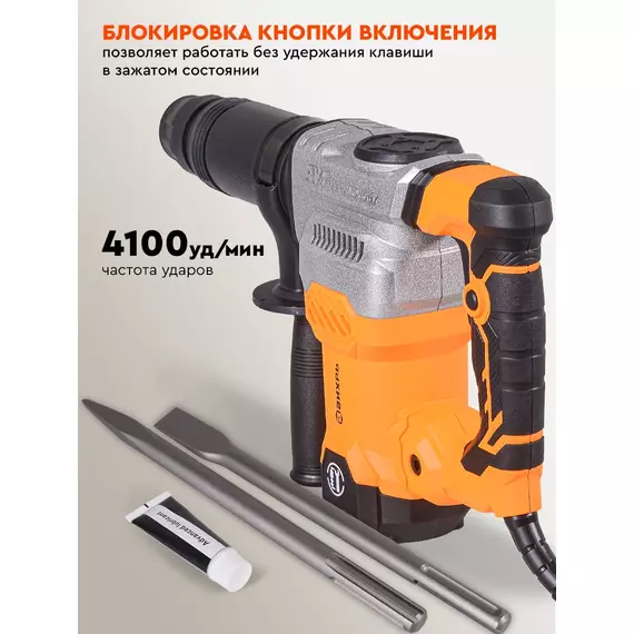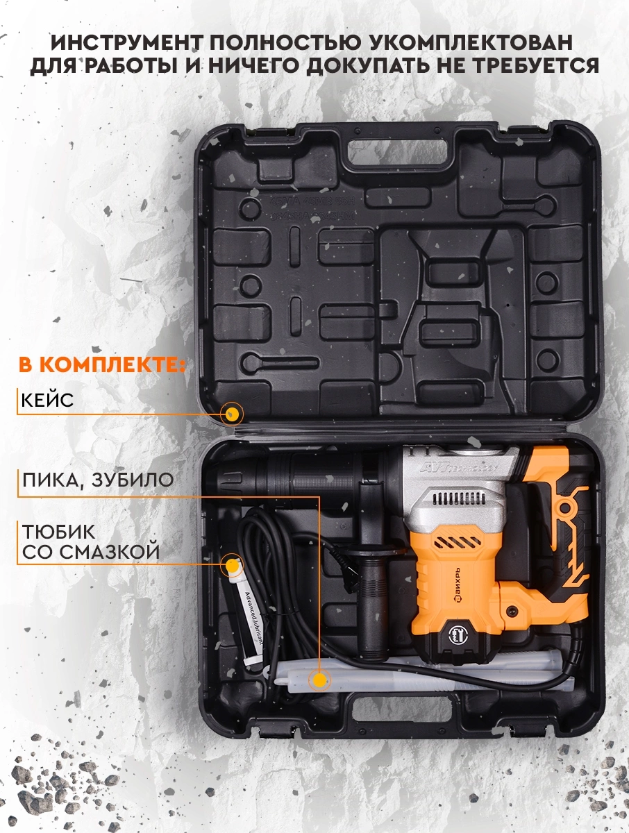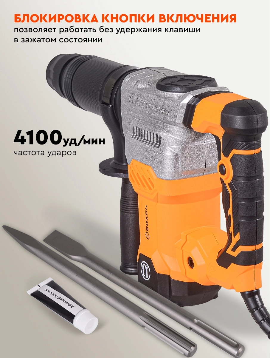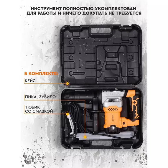 | Комплект поставки | Отбойный молоток, пика, долото, дополнительная рукоятка, кейс пластмассовый, смазка, запасные щетки. |