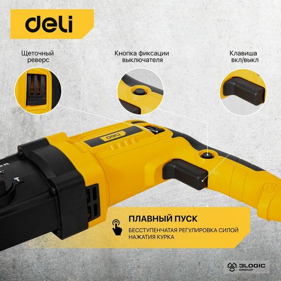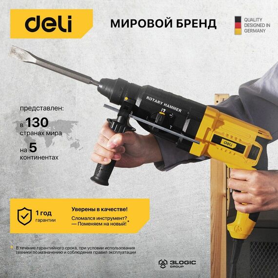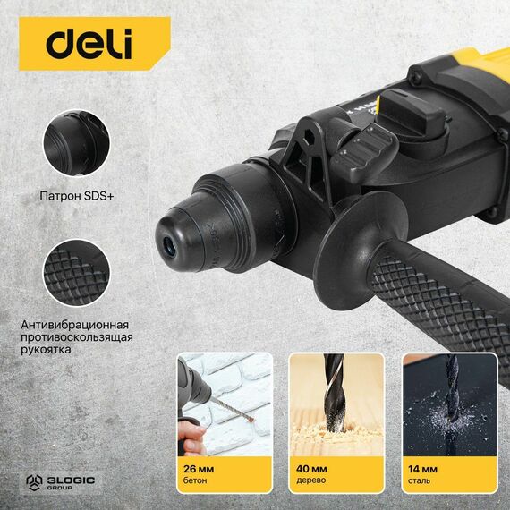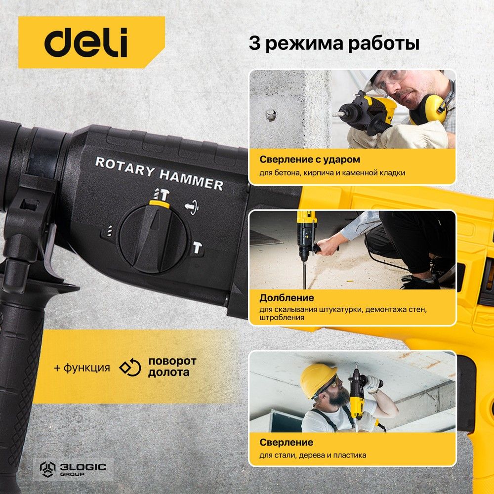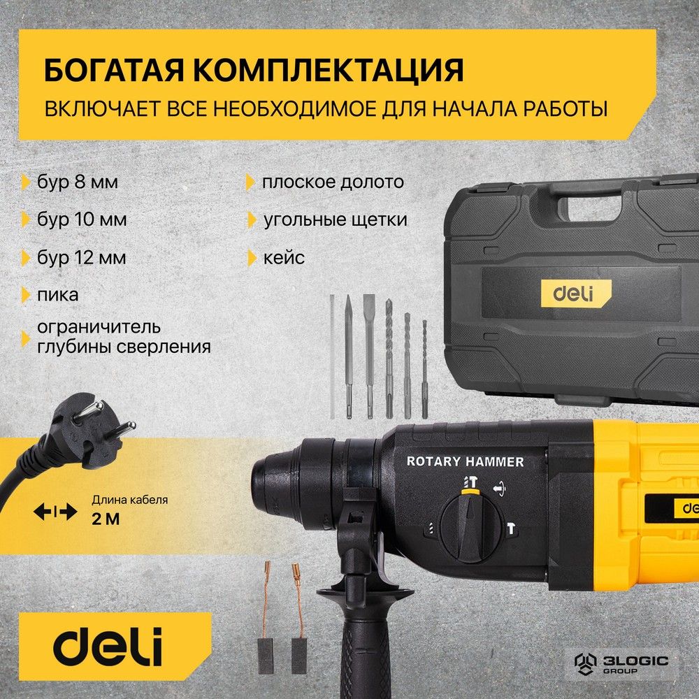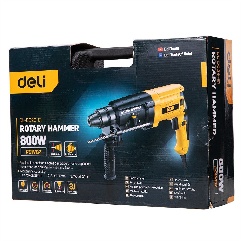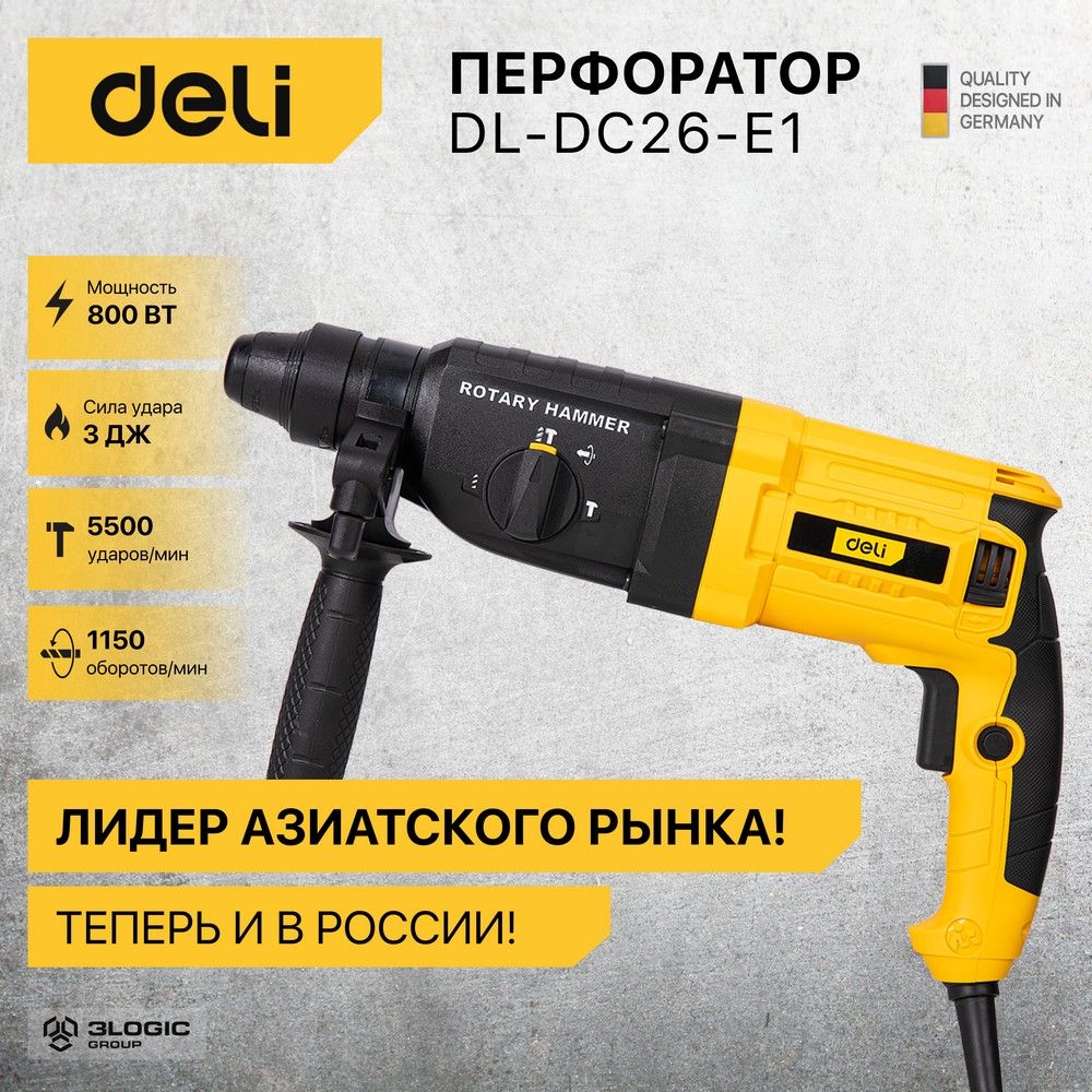 Перфоратор Deli DL-DC26-E1 800Вт, 3Дж, 5500уд/мин, 1150об/мин, кейс, в комплекте 3 бура, пика, долото
