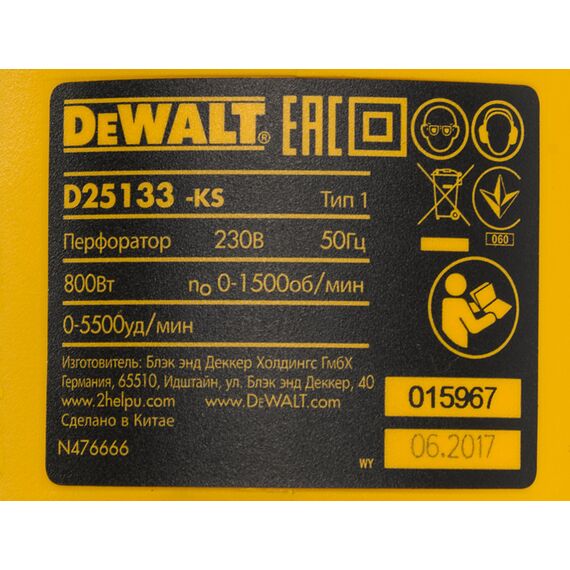 Перфоратор DeWALT D25133K-QS SDS-plus 2.8Дж кейс