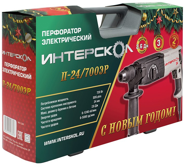 Перфоратор Интерскол П-24/700ЭР SDS plus, кейс [160.1.0.00]