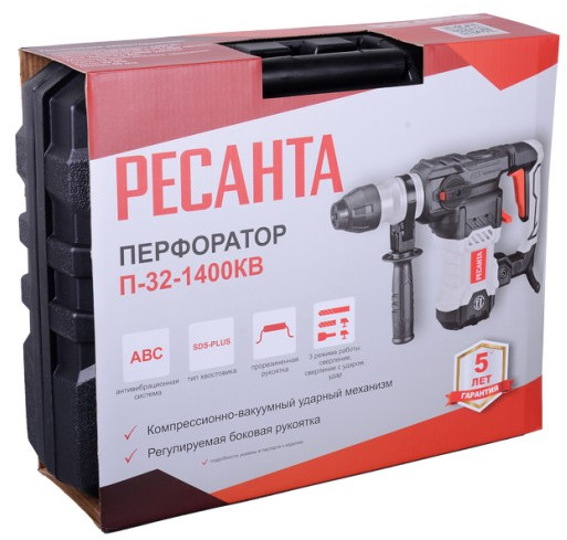 - Перфоратор П-32-1400КВ имеет все три режима работы: сверление, сверление с ударом и функция удара. Предусмотрена система защиты рабочего механизма от попадания пыли.
