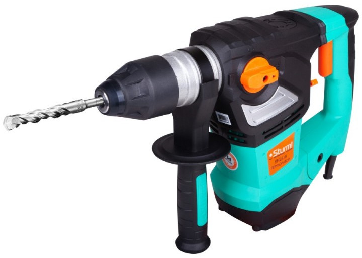 - Прочный транспортировочный кейс, буры SDS-plus 8,10,12 мм, пика, плоское зубило, дополнительные угольные щетки, смазка для хвостовиков, ограничитель глубины, дополнительная рукоятка в комплекте