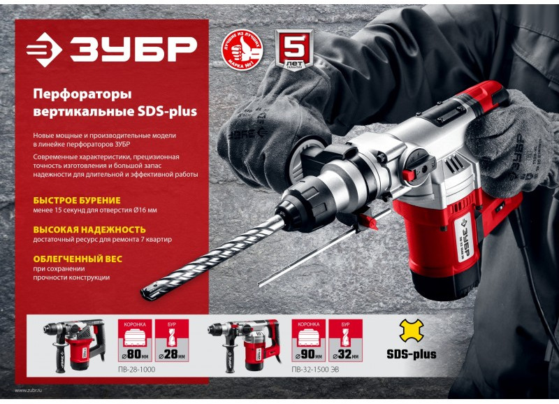 - Легкое изделие в вертикальной компоновке для сверления и бурения отверстий, а также ударного долбления. Очень удобная работа благодаря небольшому весу, антивибрационной системе, индикаторам состояния и быстрой замене расходного инструмента. Перфораторы ЗУБР - созданы работать