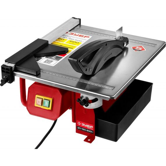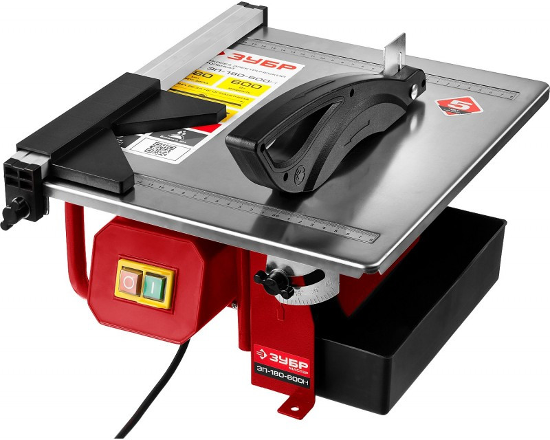 Электроплиткорез Зубр Мастер ЭП-180-600Н диск 180 мм, глубина реза 90°-34мм/45°-17мм, стол 330х360мм, 2950об/мин, 600Вт