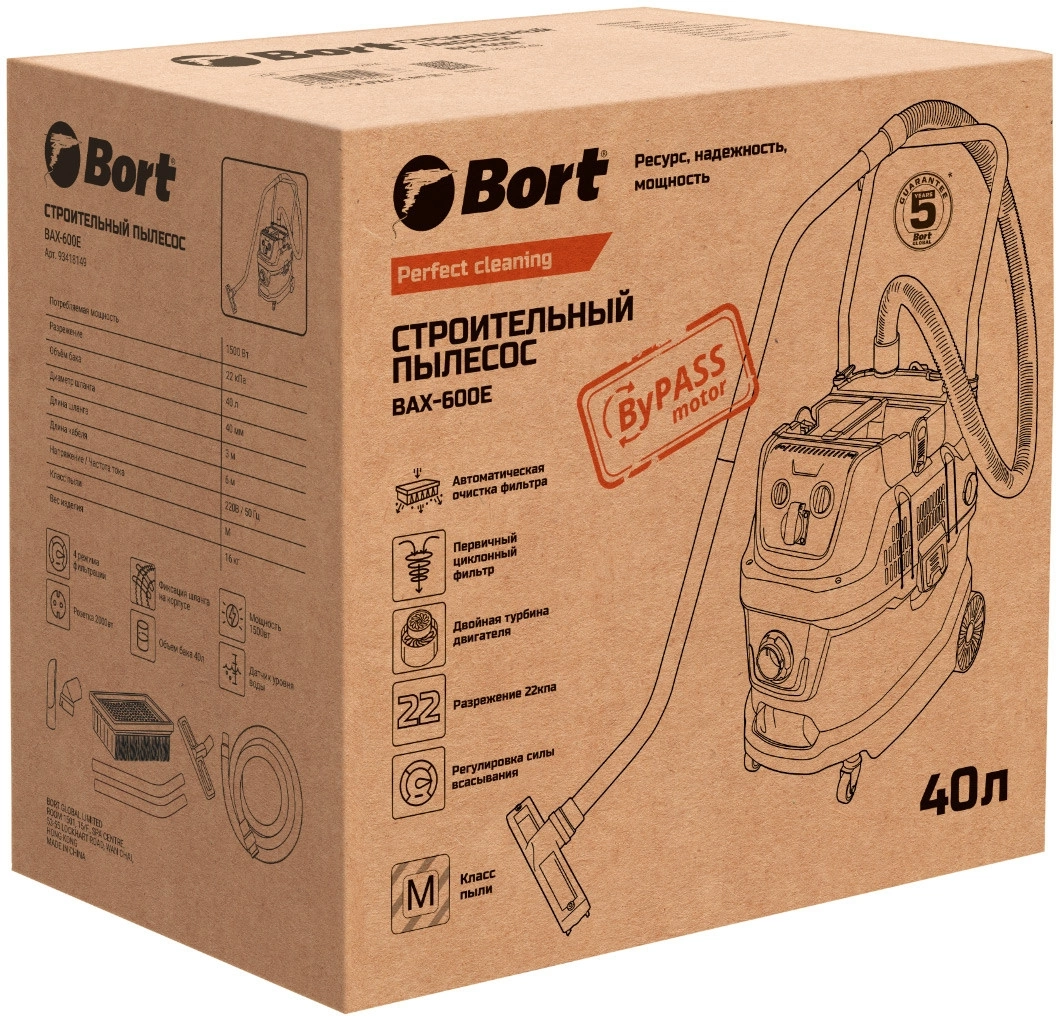 Строительный пылесос Bort BAX-600E 1600Вт (уборка: сухая/влажная) серый [93418149]