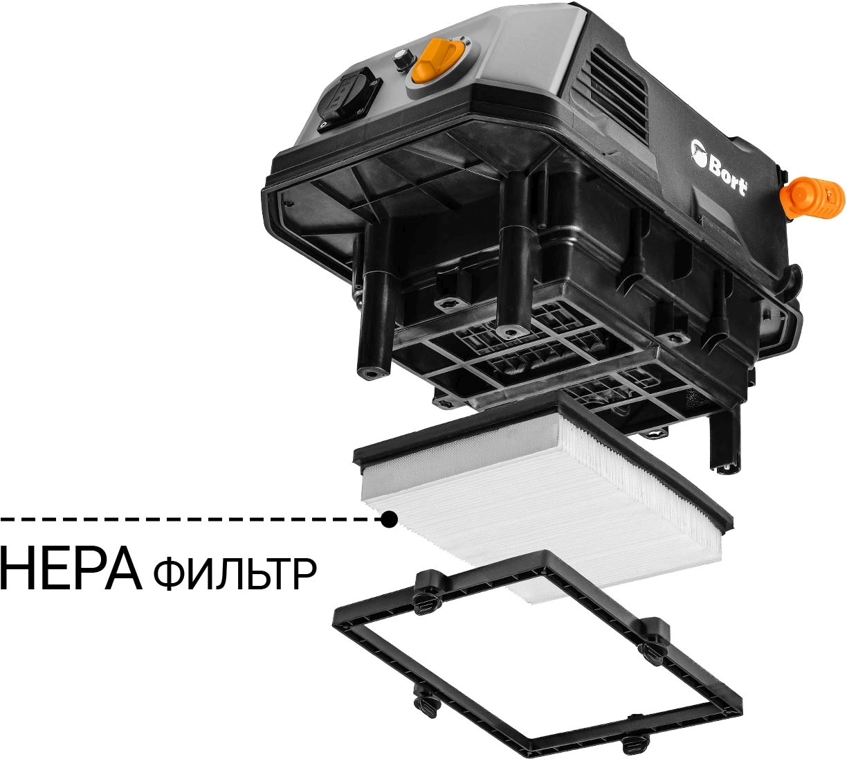 Строительный пылесос Bort BAX-700 1600Вт (уборка: сухая/влажная) серый [93418118]