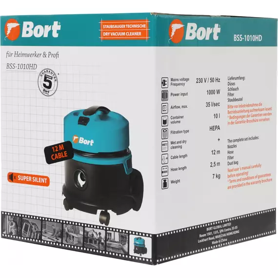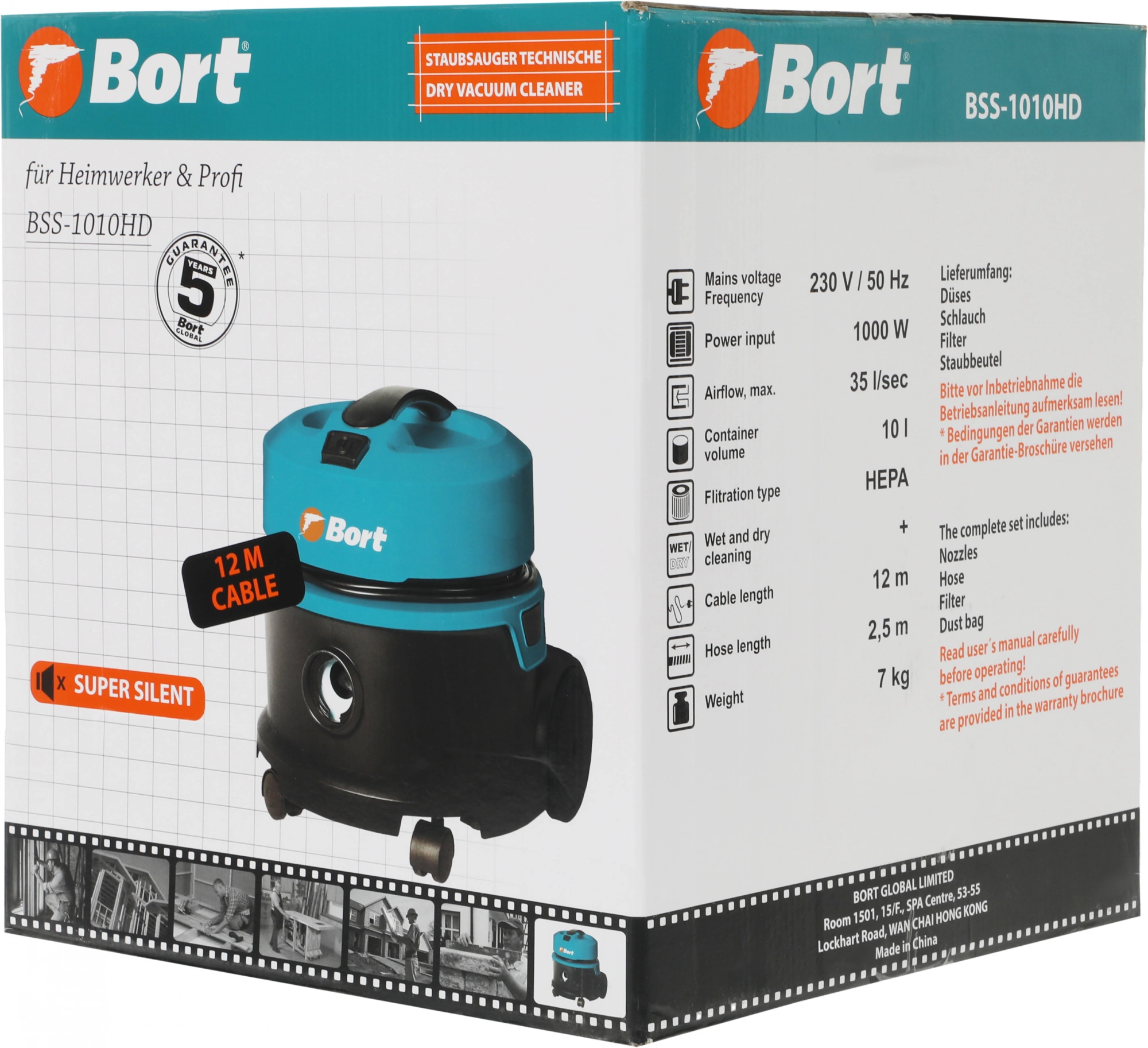 Строительный пылесос Bort BSS-1010HD 1000Вт (уборка: сухая) синий [91204467]
