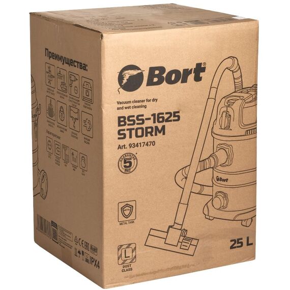 Строительный пылесос Bort BSS-1625-Storm 1600Вт (уборка: сухая/влажная) синий [93417470]