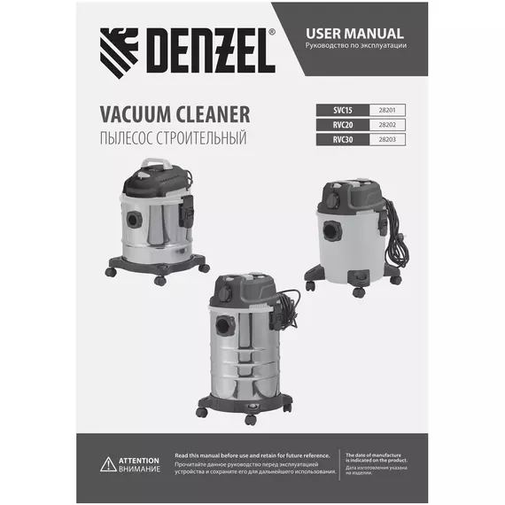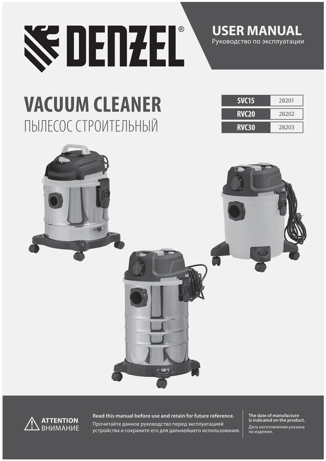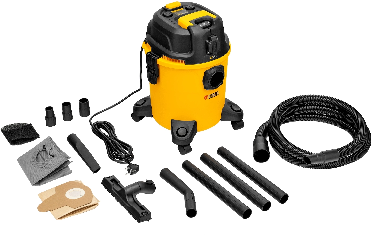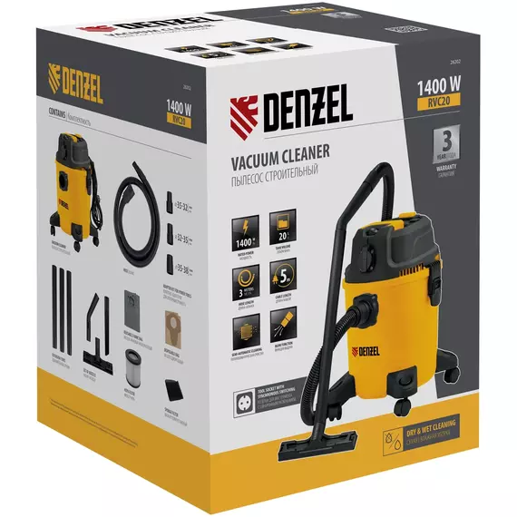 Строительный пылесос Denzel RVC20 1400Вт (уборка: сухая/сбор воды/выдув) желтый [28202]