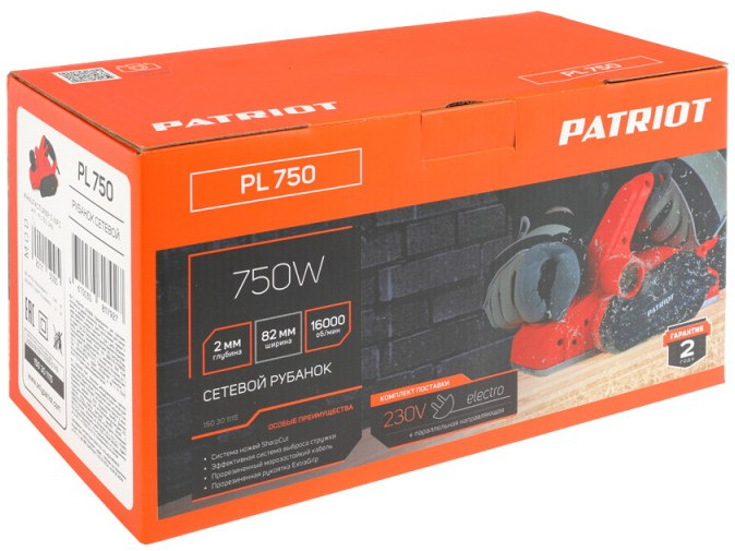 Рубанок Patriot PL 750 750Вт, 82/2.0 мм [150301115]