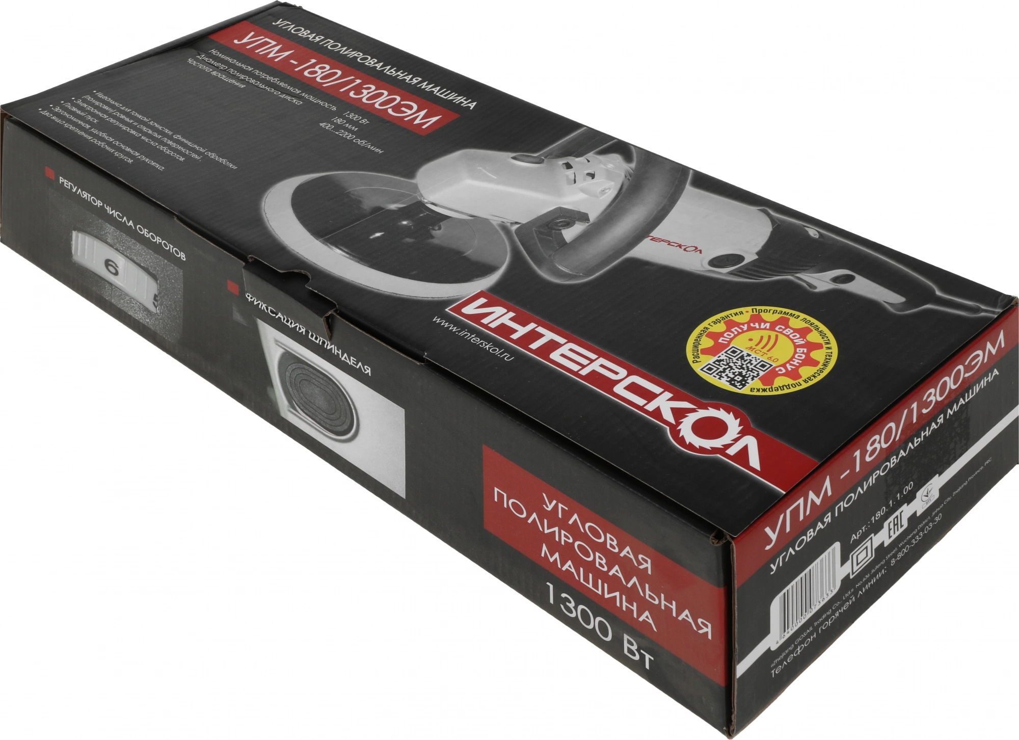 Шлифмашина полировальная Интерскол УПМ-180/1300ЭМ 1.3кВт, 180мм, 400-2200об/мин, 3,1кг [180.1.1.00]