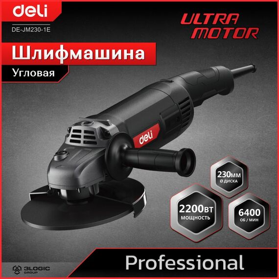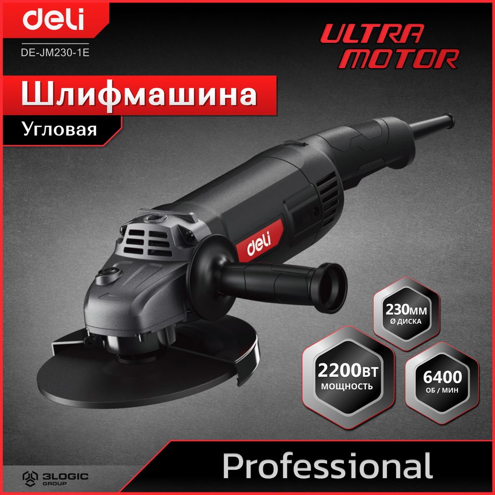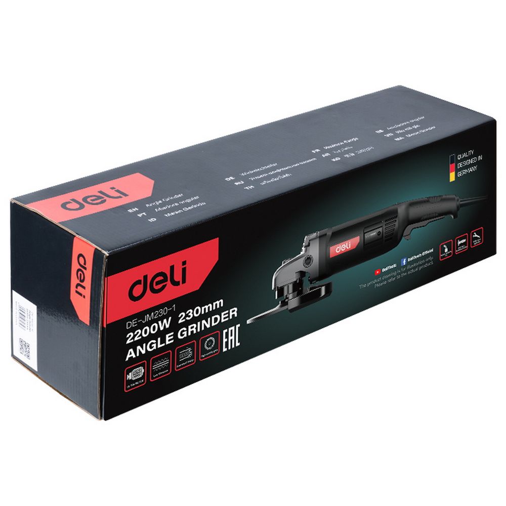 Угловая шлифмашина сетевая Deli DE-JM230-1E 2200Вт, 230мм, 6600об/мин, картон