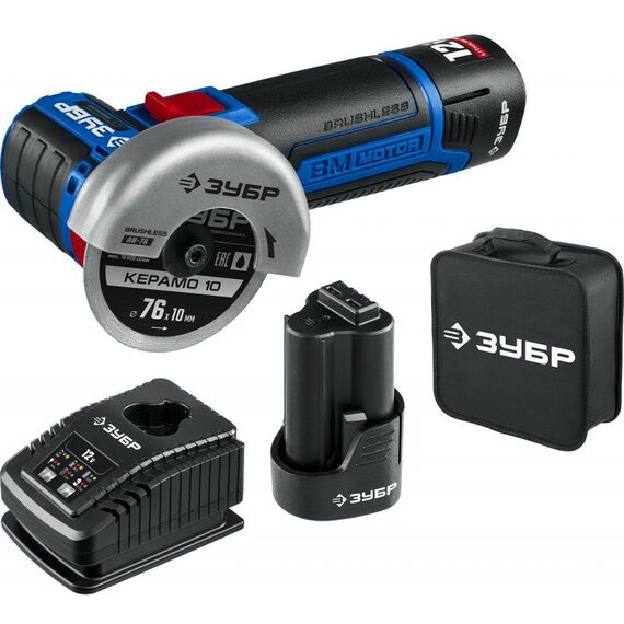 Бесщеточная УШМ Зубр Профессионал AB-76-22 12В, 2 АКБ (2Ач), в сумке