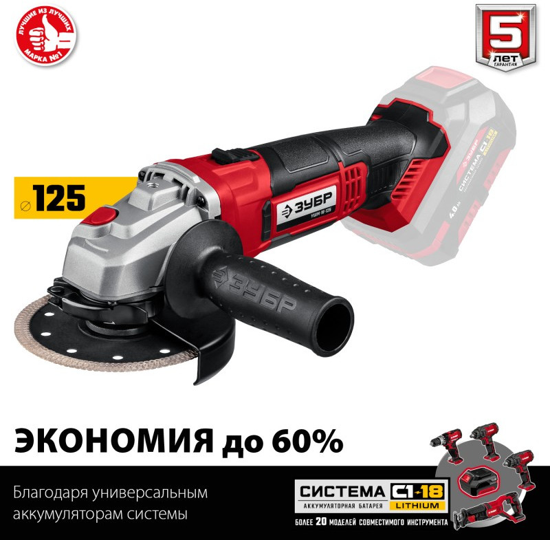 УШМ Зубр УШМ-18-125 18В, без АКБ, в коробке
