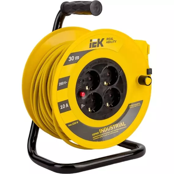 Удлинитель силовой IEK WKP14-10-04-30 Industrial 1кв.мм 4розет. 30м ПВС 10A катушка желтый