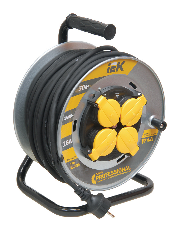 Тепловое реле защищает от превышения максимально допустимой подключаемой нагрузки. Изолирующая прорезиненная ручка обеспечивает безопасную и комфортную эксплуатацию. Рама с замкнутым контуром изготовлена из стальной трубы. Во всех удлинителях применена литая вилка в цвет кабеля.
