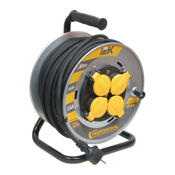 Удлинитель силовой IEK WKP17-16-04-30-44 Professional 3x2.5кв.мм 4розет. 30м КГ 16A метал.катушка серый