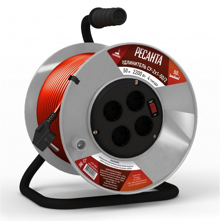 Удлинитель силовой на катушке РЕСАНТА СУ-2х1-50/2 [61/118/5]