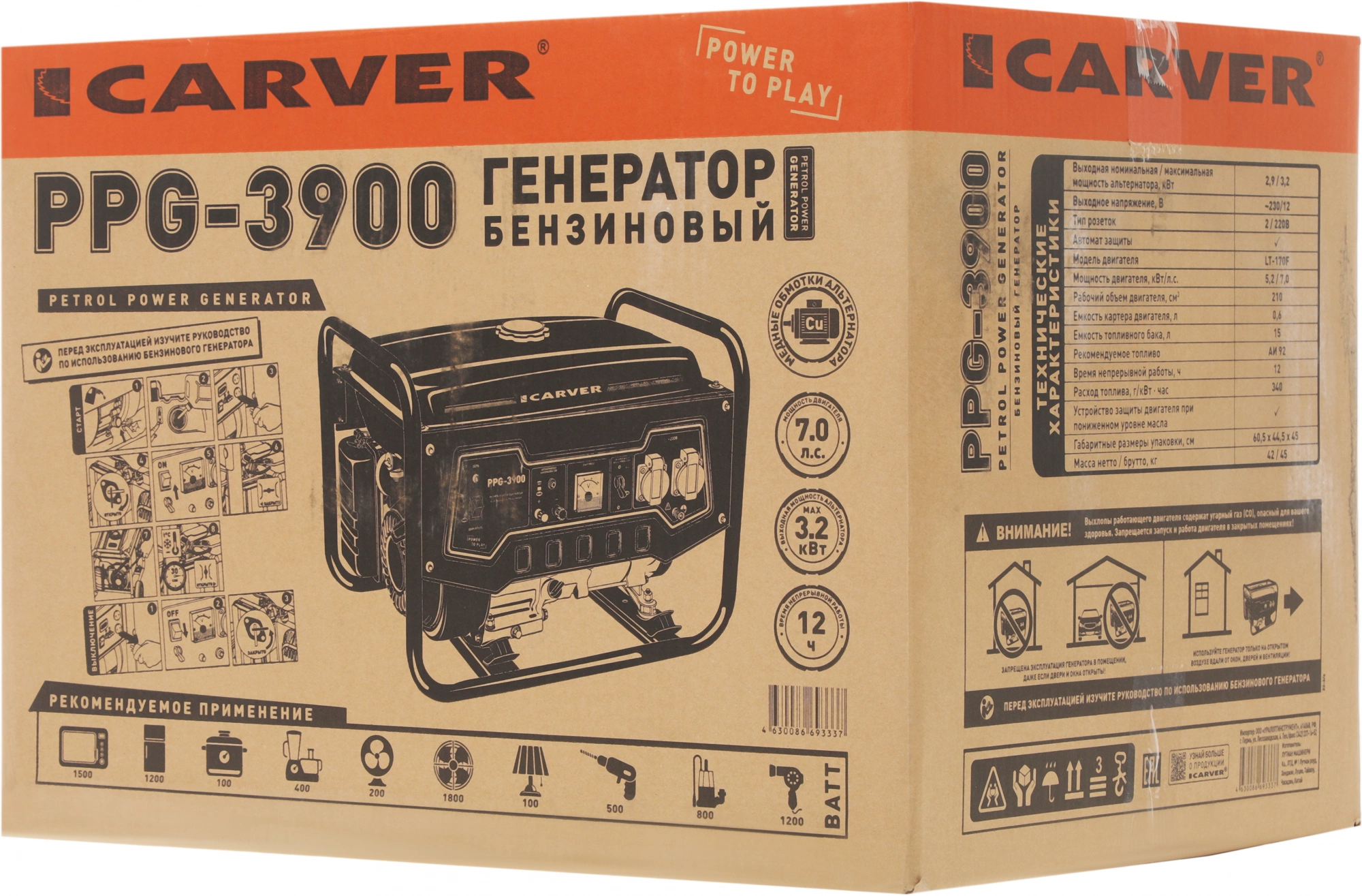 Генератор Carver PPG-3900 3.2кВт [01.020.00007]