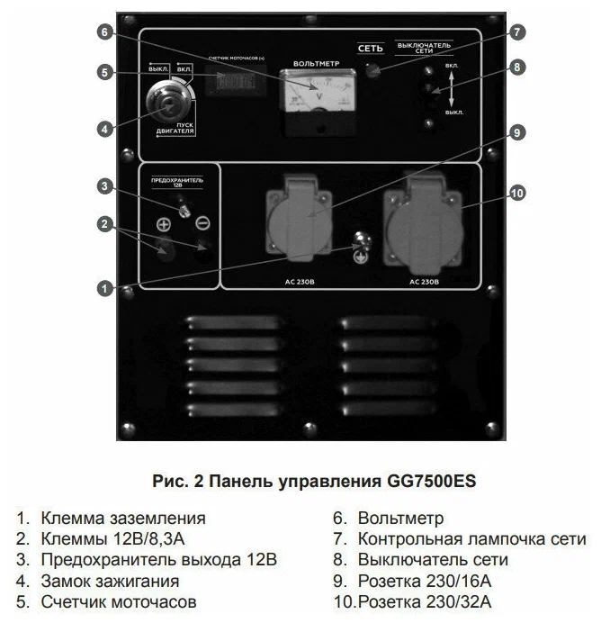 | Особенности | Пластиковые крышки защищают контакты розеток CHAMPION GG7500ES от попадания влаги и пыли. Медная обмотка ротора и статора. Уровень мощности звука 96.5 дБ. Коэффициент мощности -1. Легкий запуск. Долгий срок службы. Высокое качество сборки. Простота эксплуатации. |