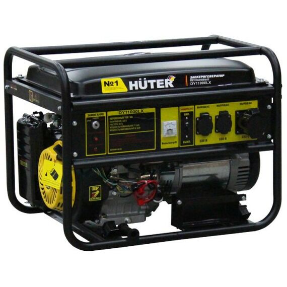 - Бензиновый генератор Huter DY11000LX – портативная компактная электростанция, обеспечивающая электроснабжение бытовой техники и профессионального оборудования, питающегося от стандартной однофазной сети 220 Вольт. Это самый выгодный бензиновый электрогенератор, с оптимальными техническими характеристиками и низким расходом топлива.