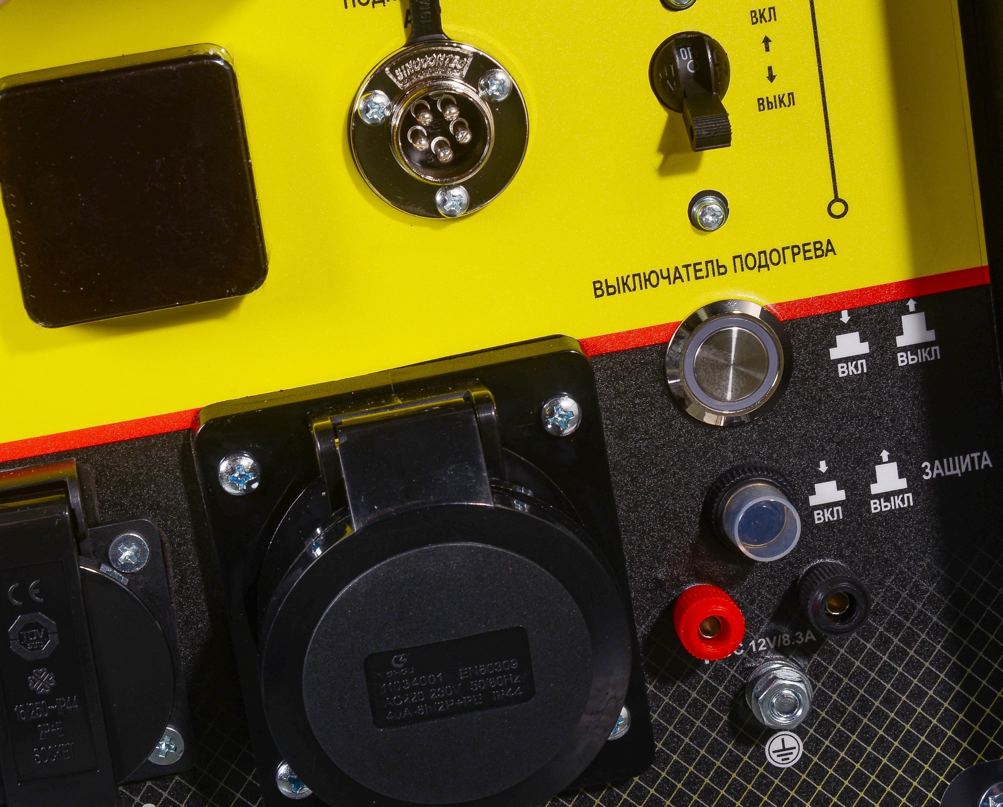 | Особенности | Щёточный генератор. Двигатель одноцилиндровый с воздушным охлаждением. Есть предподготовка для подключения АВР. |