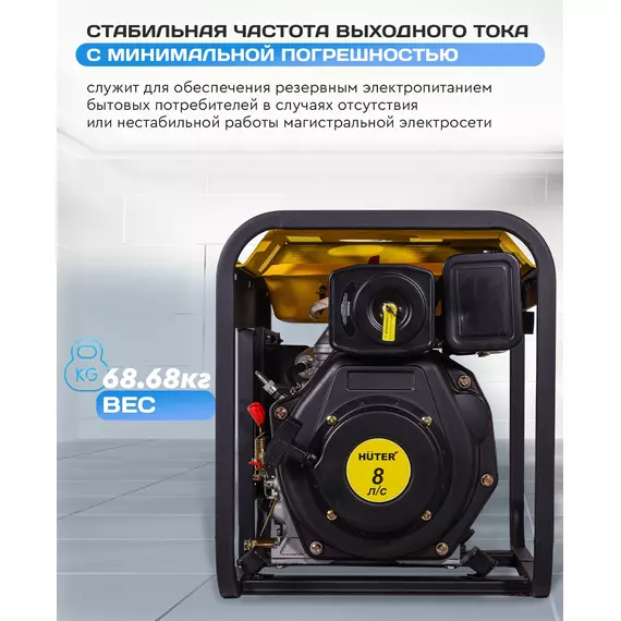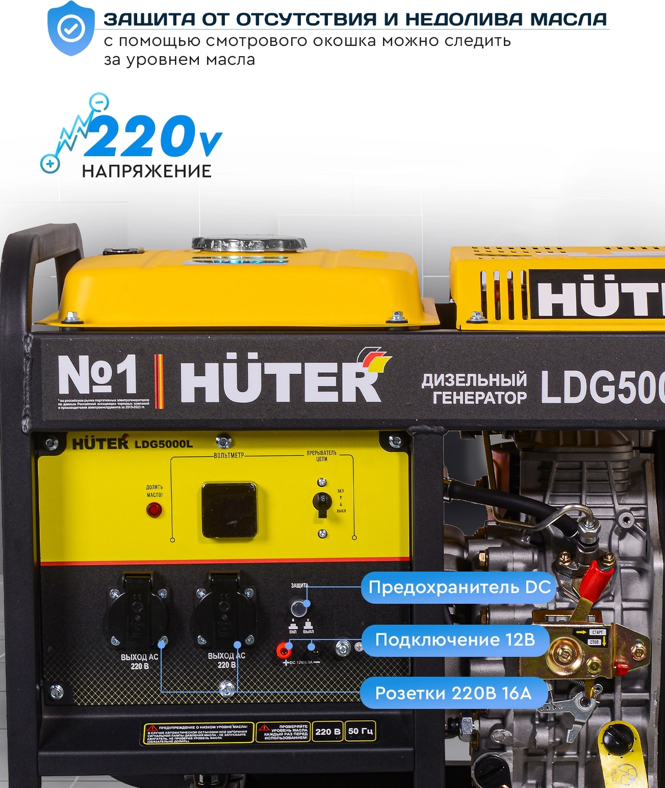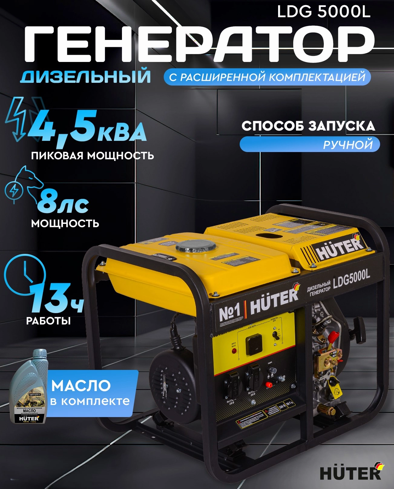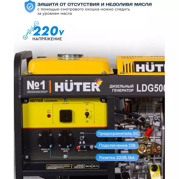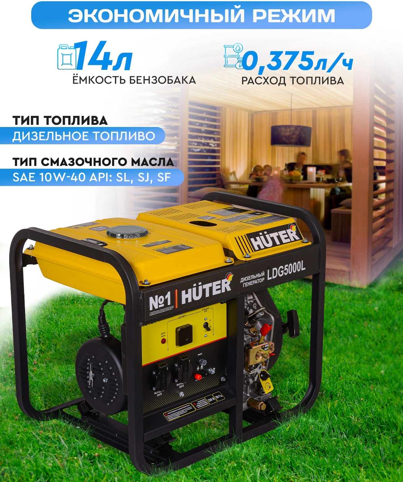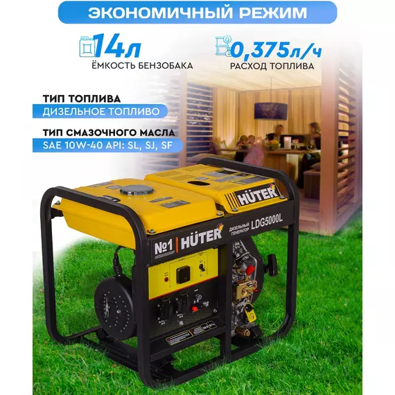 Электрогенератор дизельный Huter LDG 5000L KEM069 3.3 Квт, 220-230 В, бак 14 л