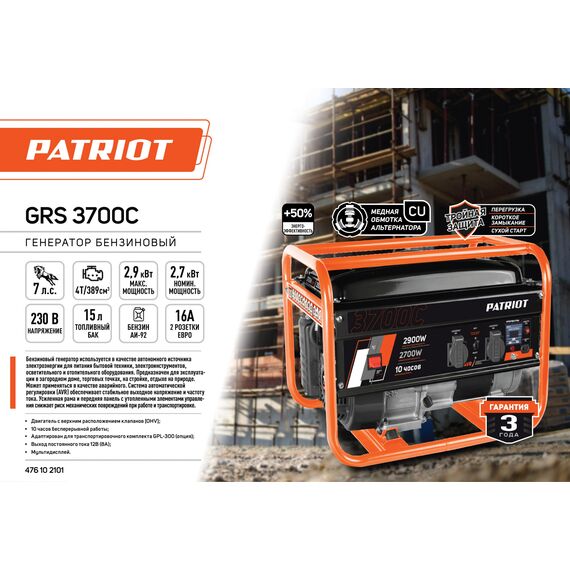 Генератор Patriot GRS 3700C 2.9кВт [476102101]