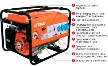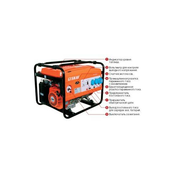 Электростанция SKAT УГБ-5000Е бензин, 5,0/5,5 кВт, бак 25 л, вес 89 кг