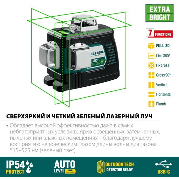 Лазерный нивелир KRAFTOOL 34641 LL 3D зеленый