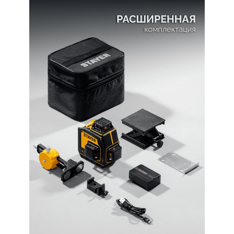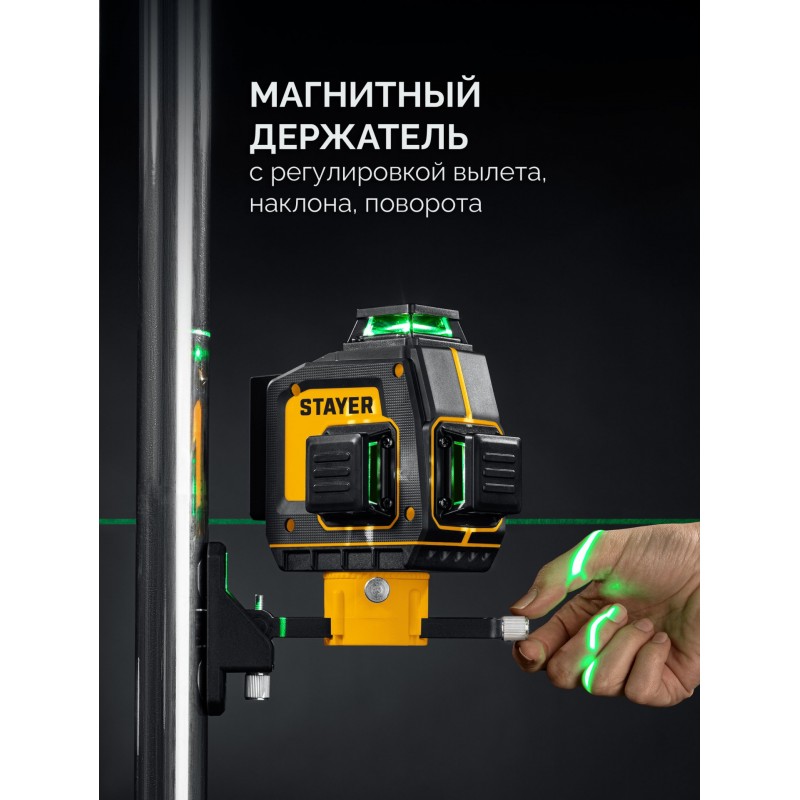 Лазерный нивелир STAYER SL-3D #2 50м, точн. +/-0,5 мм/м, зеленый, микролифт, держатель [34963-2]