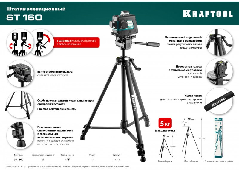 Штатив элевационный KRAFTOOL ST 160 [34714]