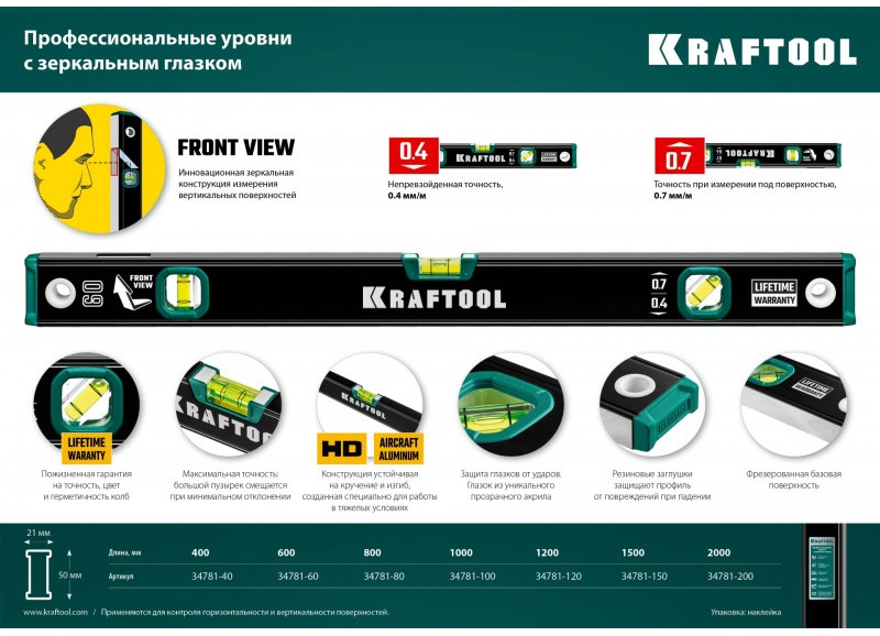 уровень с зеркальным глазком KRAFTOOL 1500 мм [34781-150]