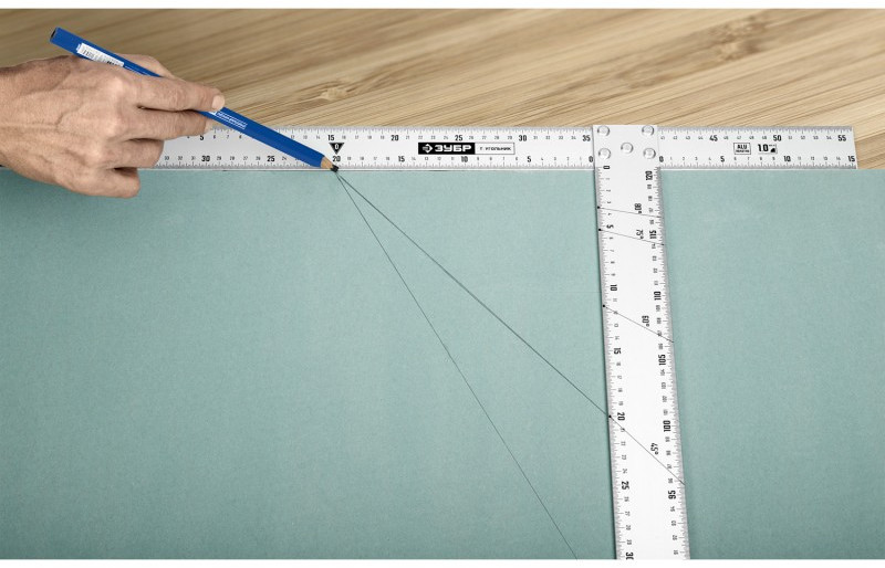 Специальный Т-угольник идеально подходит для реза гипсокартона и листовых материалов.