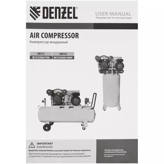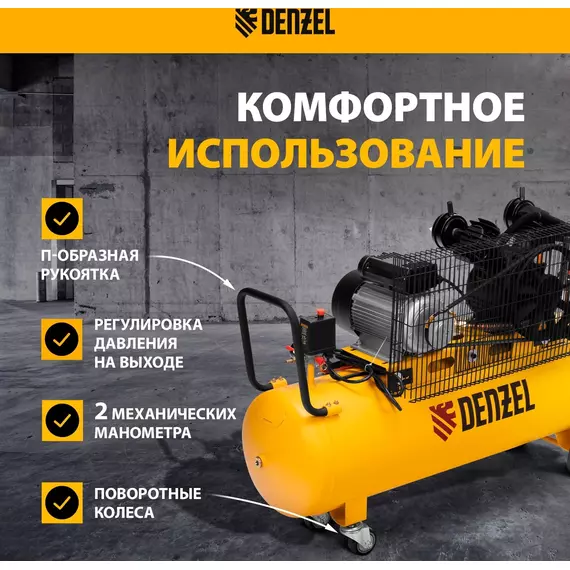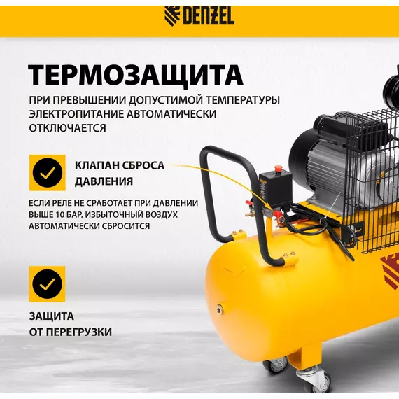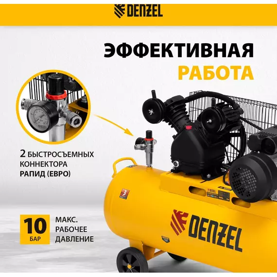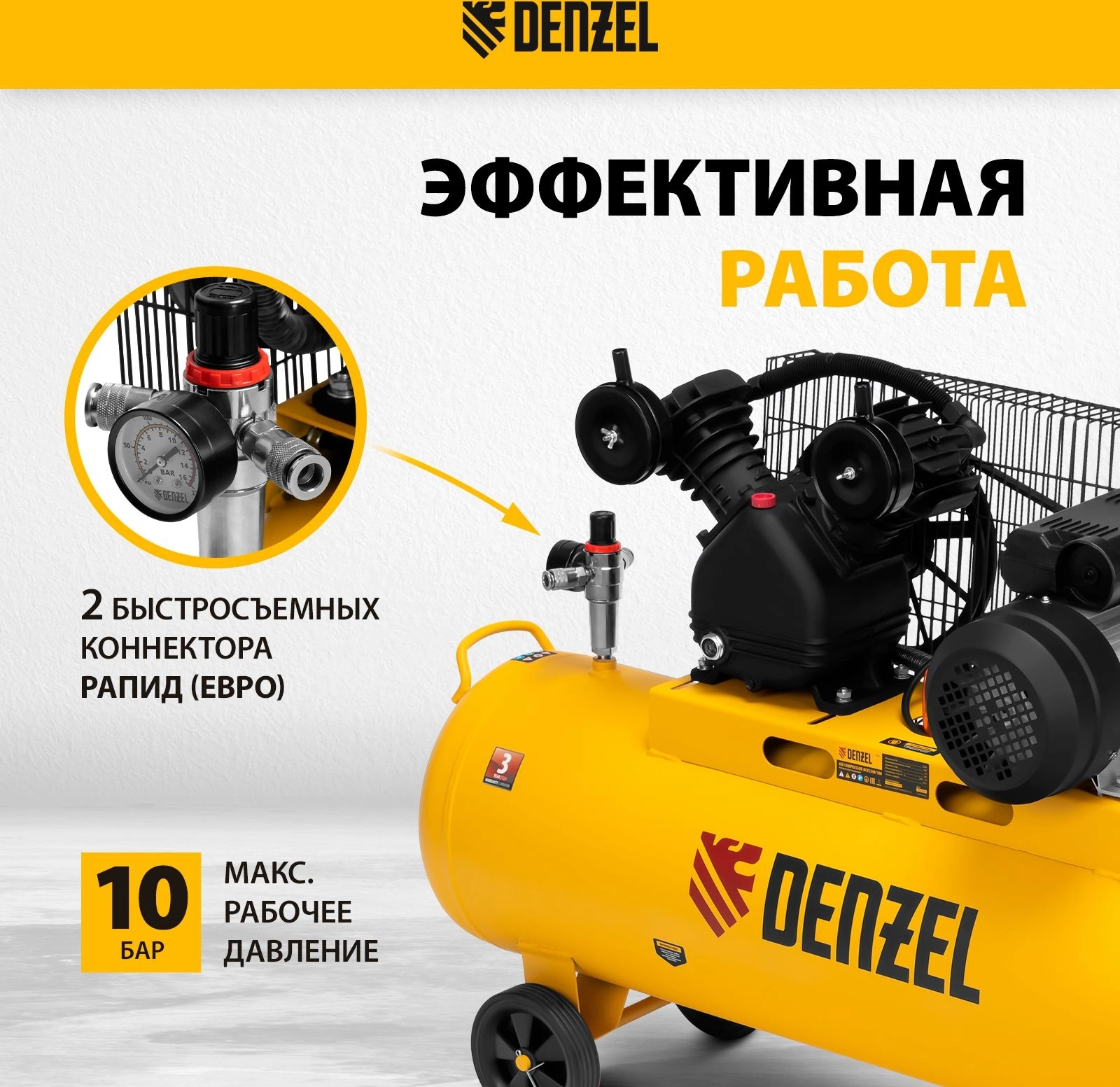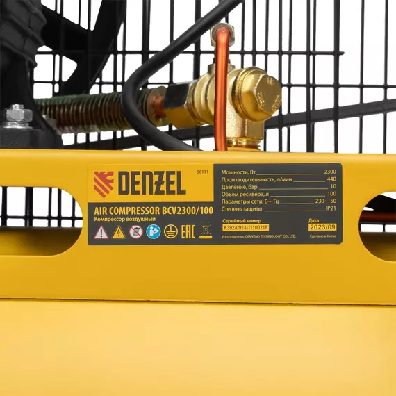 Компрессор Denzel BCV2300/100 масляный 440л/мин 100л 2300Вт желтый/черный [58111]