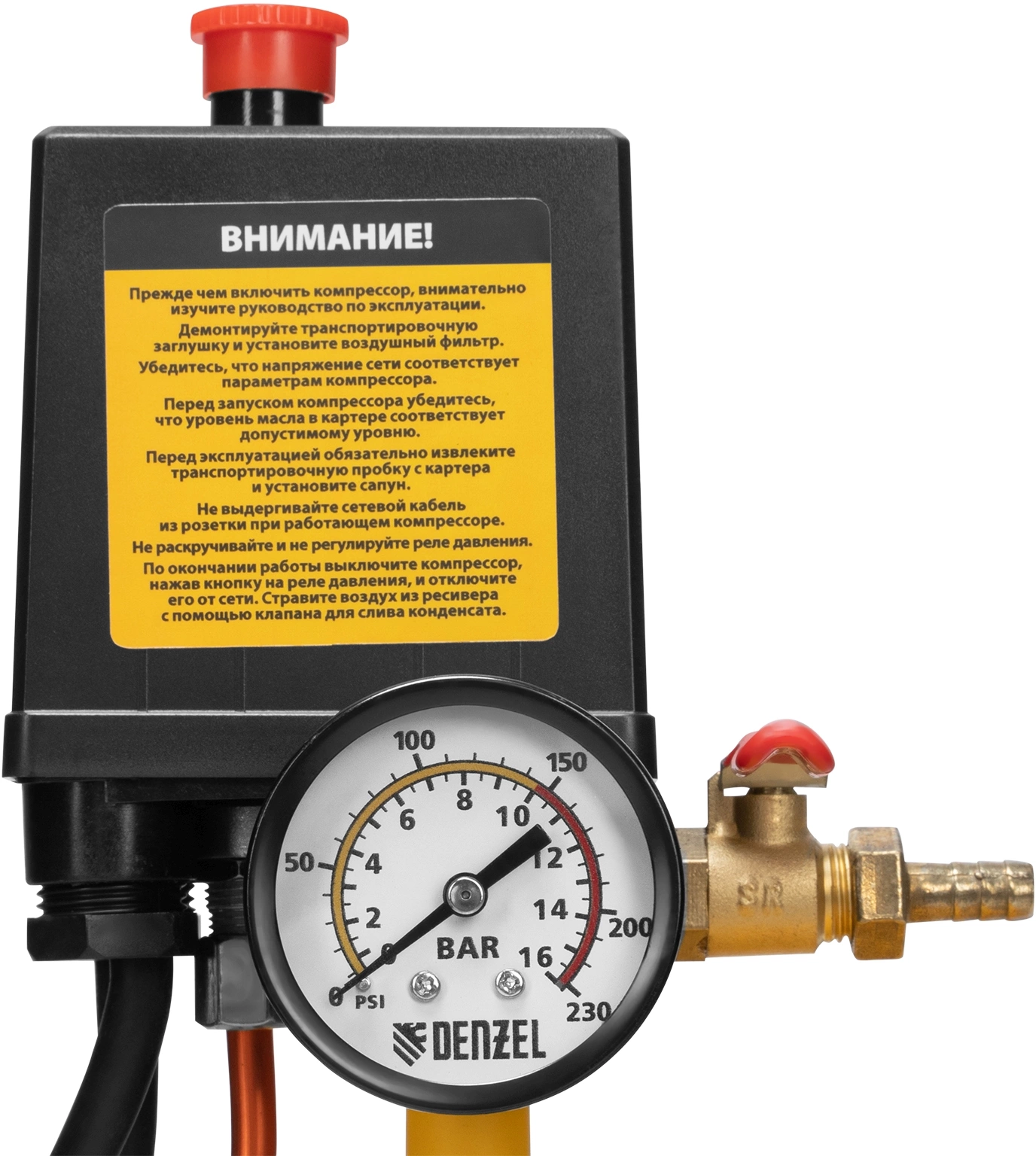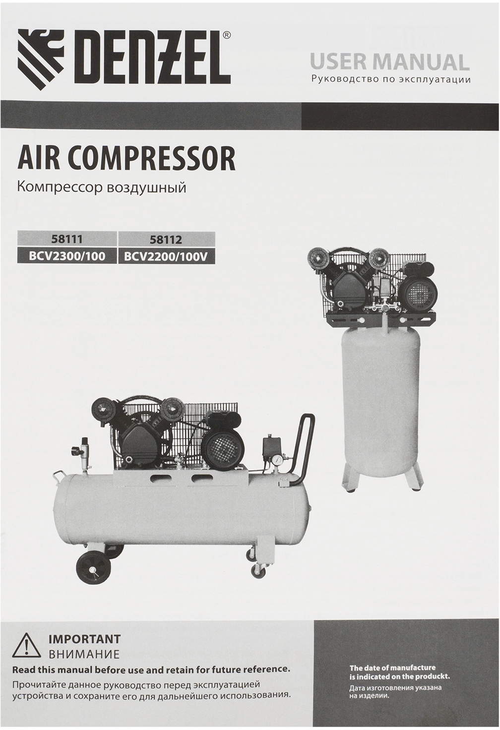 Компрессор Denzel BCV2300/100 мощностью 2.3 кВт способен производить 440 литров сжатого воздуха в минуту. К нему могут подключаться сразу 2 пневмоинструмента, например, продувочный пистолет и плазморез.