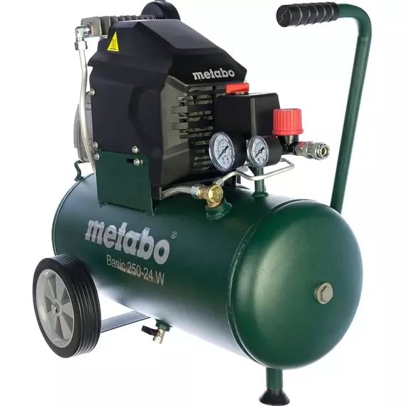 Компрессор Metabo Basic 250-24 W способен образовывать давление до 8 бар и перекачивать 200 л/минуту. Мощность составляет 1,5 кВт. Удобен в транспортировки, благодаря наличию колес.