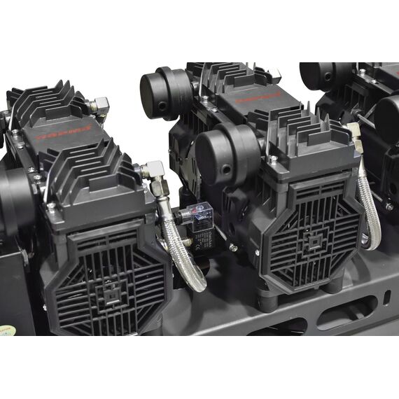 | Особенности | Трехмоторная, 6-цилиндровая компрессорная установка повышенной эффективности, последовательное включение двигателей в зависимости от расхода воздуха, электронное управление, низкий пусковой ток. |