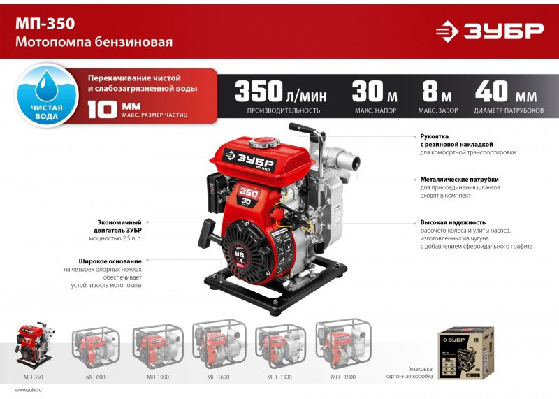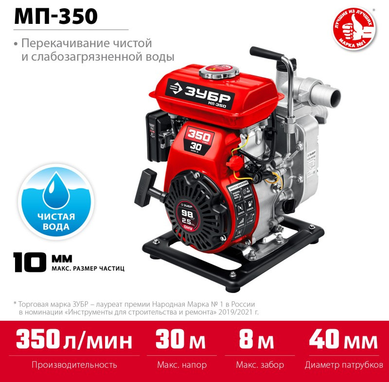 Мотопомпа бензиновая Зубр МП-350 350 л/мин