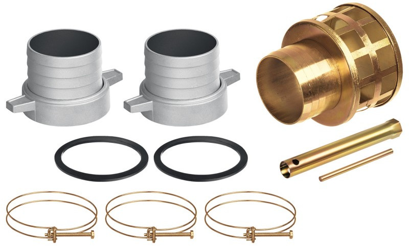- Металлические патрубки для присоединения шлангов входят в комплект