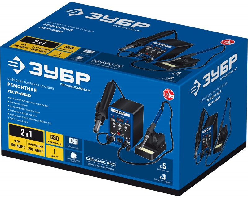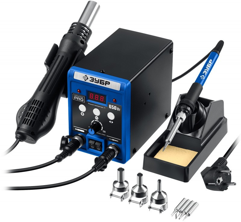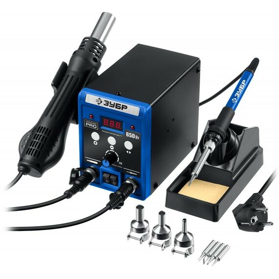 Ремонтная паяльная станция Зубр ПСР-650 Профессионал, 100 - 500°С, 650 Вт, 2 в 1 [55427]