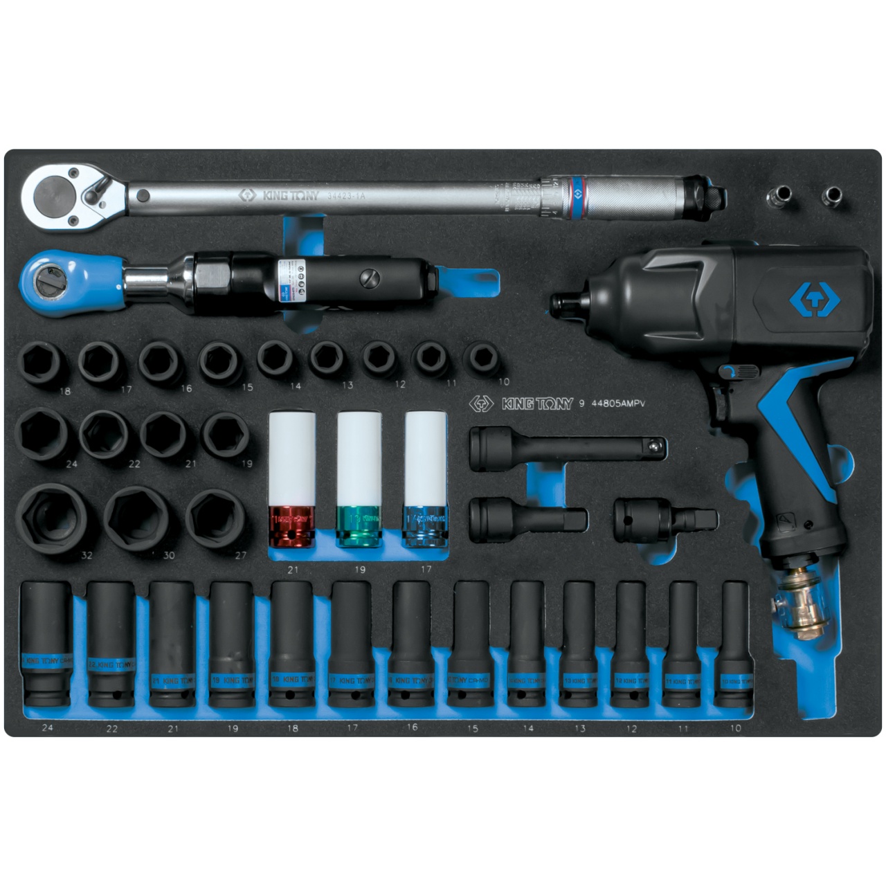 Набор пневмоинструмента 1/2" с принадлежностями King Tony 9-44805AMPV ложемент, 41 предмет