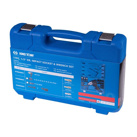 Гайковерт пневматический ударный King Tony 44106AMP01 1/2", 881 Нм, с комплектом головок, 17 предметов