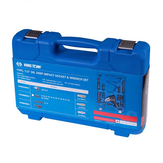 Гайковерт пневматический ударный King Tony 44108AMP01 1/2", 881 Нм, с комплектом головок, 19 предметов